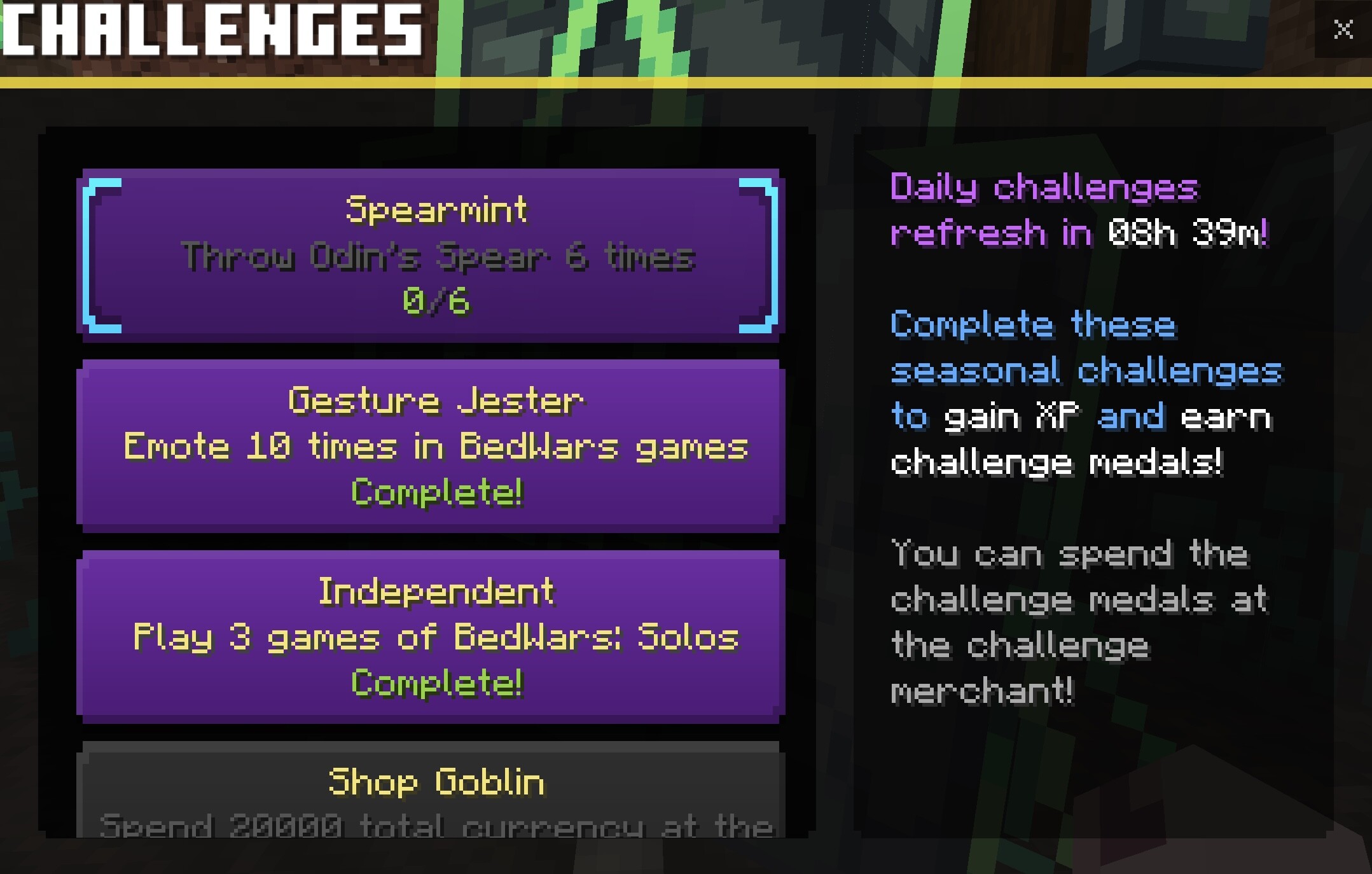 Bedwars daily challenge