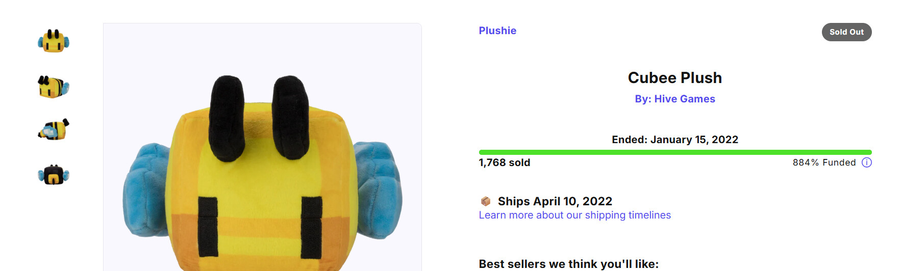 Look its been a while since Cubee plush came out and I missed the chance to get it So maybe bring it back? Might not be fair for the players who bought when it said limited edition so make a 2.0? like look how successful it was! 884% more the the OG goal!