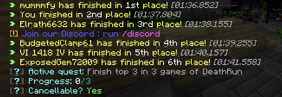 I won a deathrun game in 2nd place and it didn’t count towards my quest. I won on the map ‘western’ if that matters