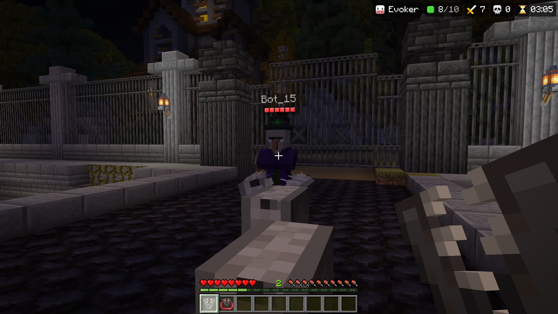 There are two little spaces above the left and right of the gate that are a block lower than the rest of the gate. Something that I discovered completely by accident is that by being attacked and sent up high, or theoretically by using an ability that makes you go higher, you can stand on these blocks in the corners and be above the rest of the map and basically able to snipe at people. I discovered this when an Iron Golem hit me, and from up there I was able to upgrade two or three times because of how strategically valuable a high spot that’s also a corner is.