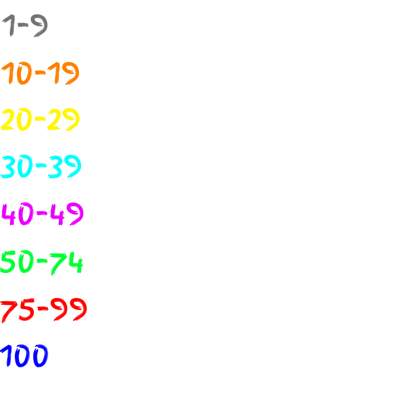 So my idea is to change up the levels you reach a new colour at, I’ve drafted an example here