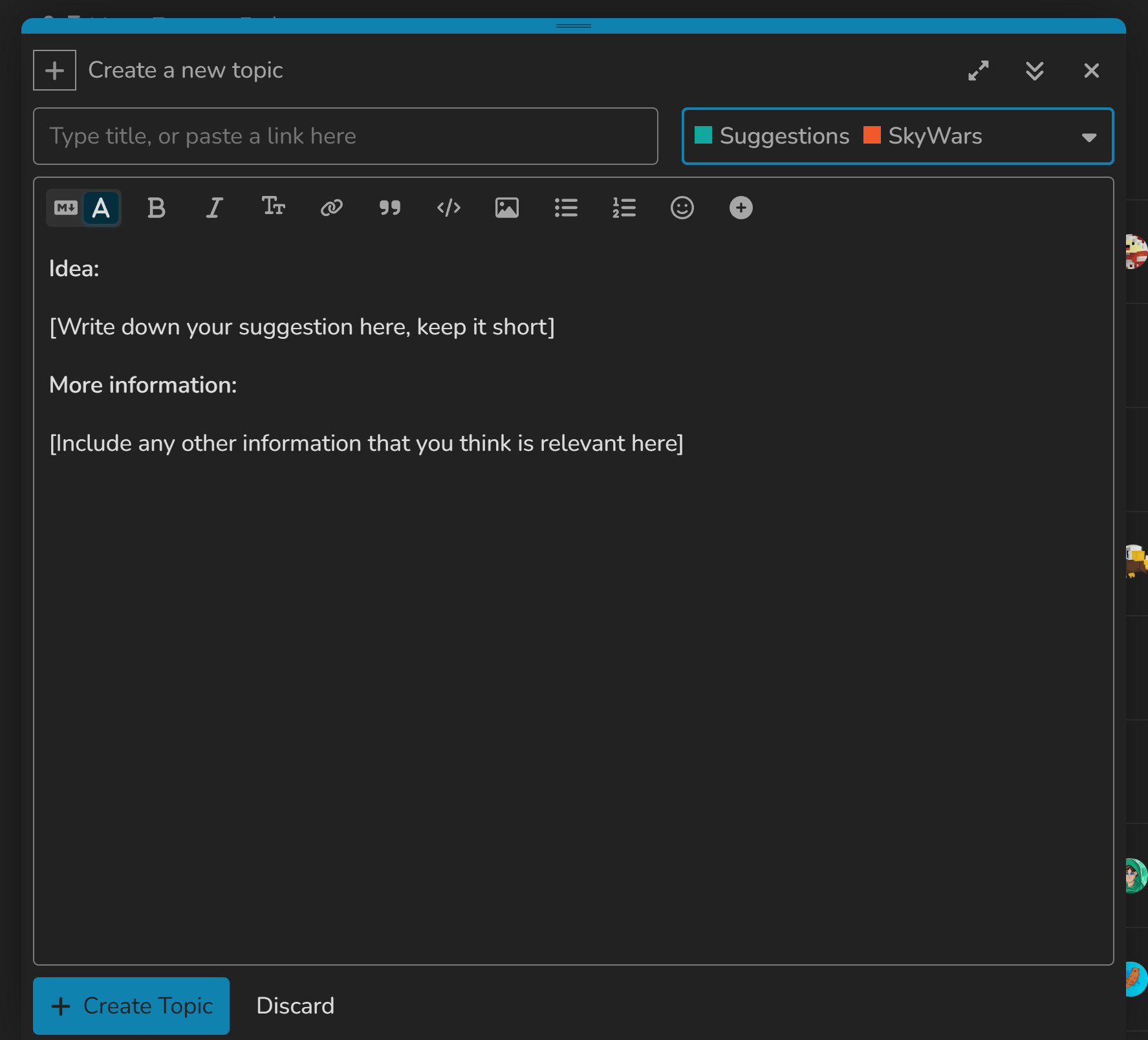 When creating a new topic, after you choose a category, a template of what the post should contain gets placed. For some newer categories, these templates don’t exist.