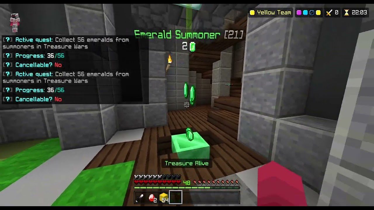 For the quest where you have to collect emeralds, you can pretty much just throw the emeralds you have collected in a generator and get the quest. This means you don’t really have to wait for 56 emeralds. As long as it lands in the exact gen spot and adds to the gen spawner, you can just speedrun this quest.